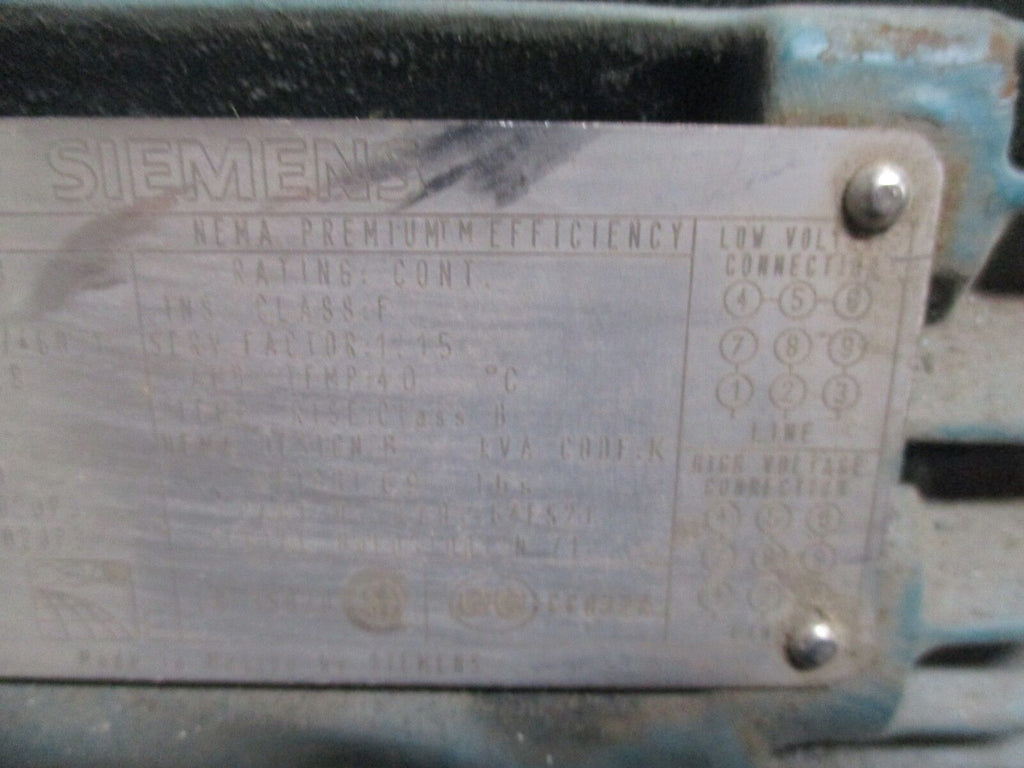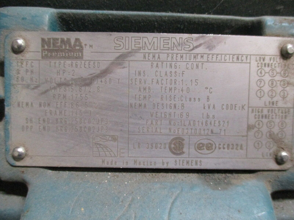 Siemens AC Motor RGZEESD 2HP 1800RPM 230/460V 5.6/2.8A 148T Frame TEFC Enclosure