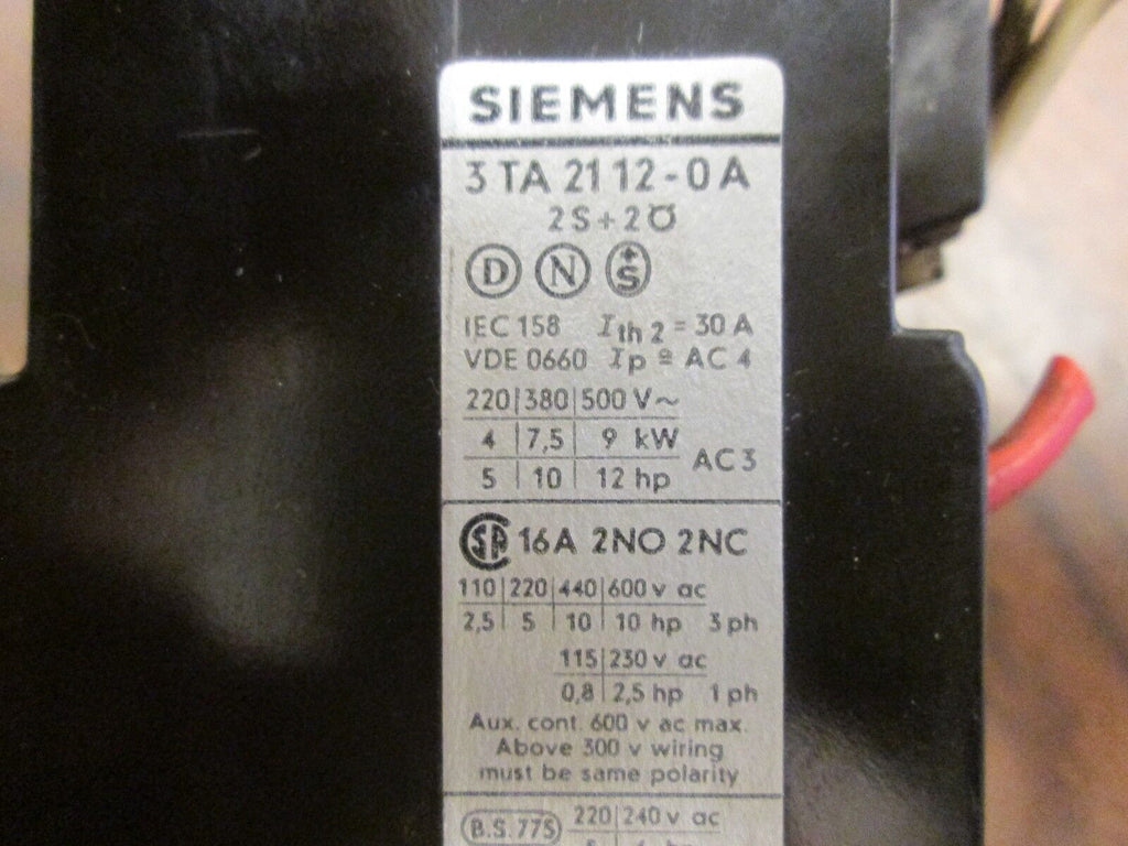 Siemens Contactor 3TA2112-0A 16A Used_x000D_ Condition: UsedBrand: SiemensMPN: 3TA2112-0A Siemens Contactor 3TA2112-0A 16A Used Condition: UsedBrand: SiemensMPN: 3TA2112-0ASiemens Contactor Part # 3TA2112-0A 16A Used LOC 12H5-2