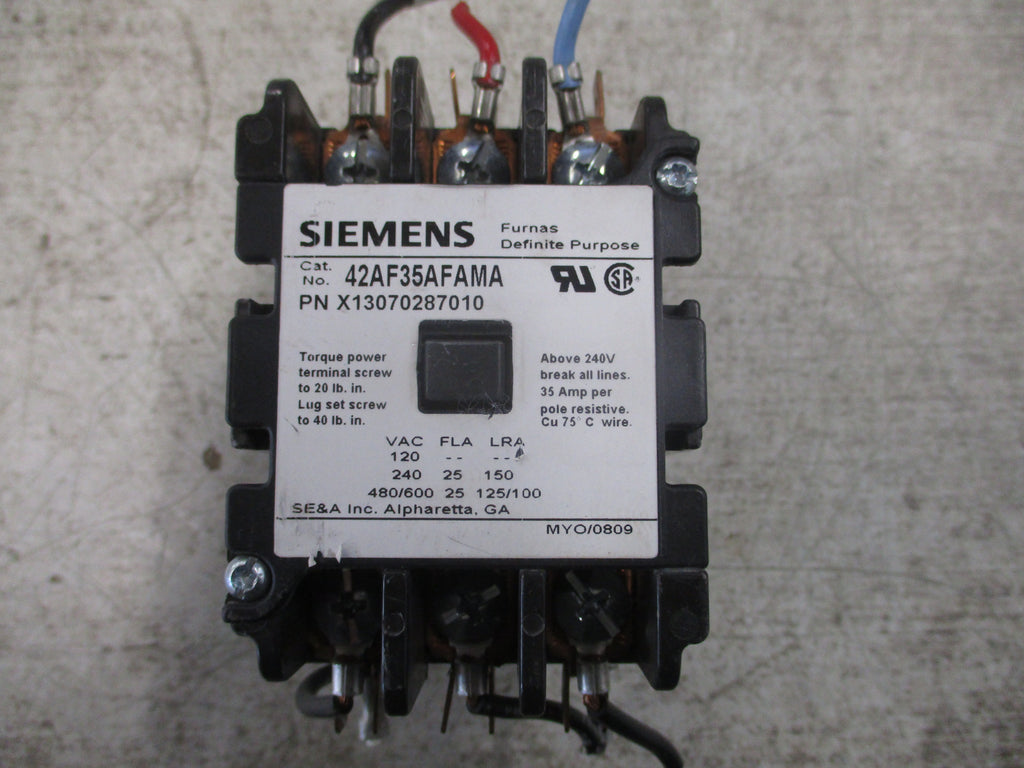 Siemens Furnas Definite Purpose Contactor 42AF35AFAMA 120V Coil 25A 600V Used LOC 58C5-22