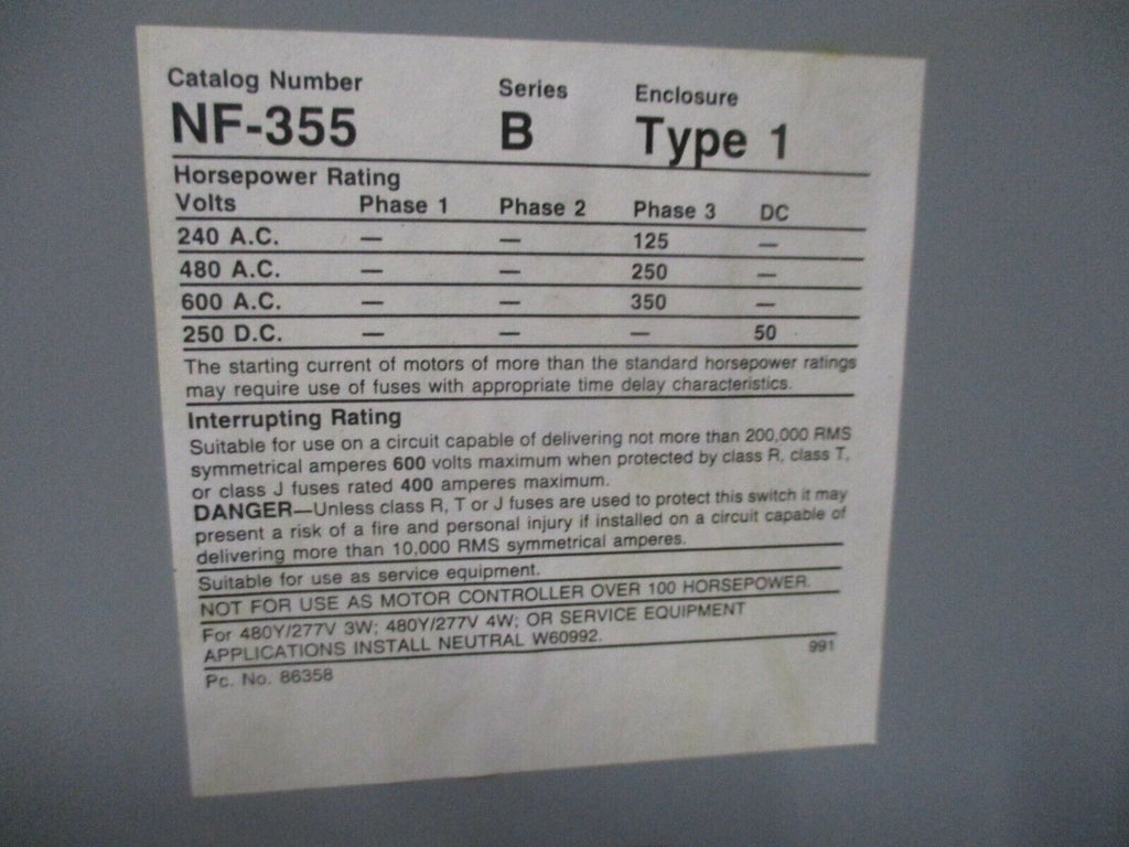 Siemens Non-Fusible Safety Switch NF355 400A 600V 3Ph Type 1 E...