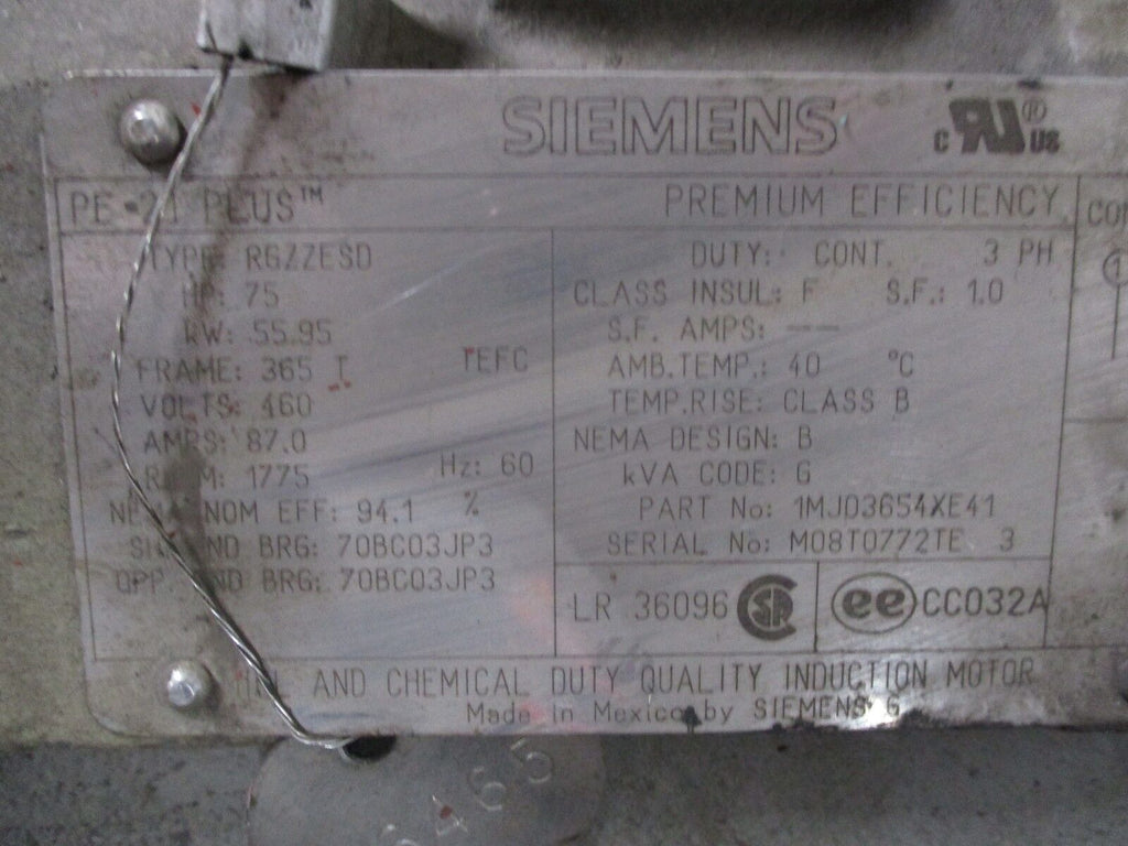 Siemens PE-21 Plus RGZZESD AC Motor 1MJ03654XE41 75HP 1800RPM ...