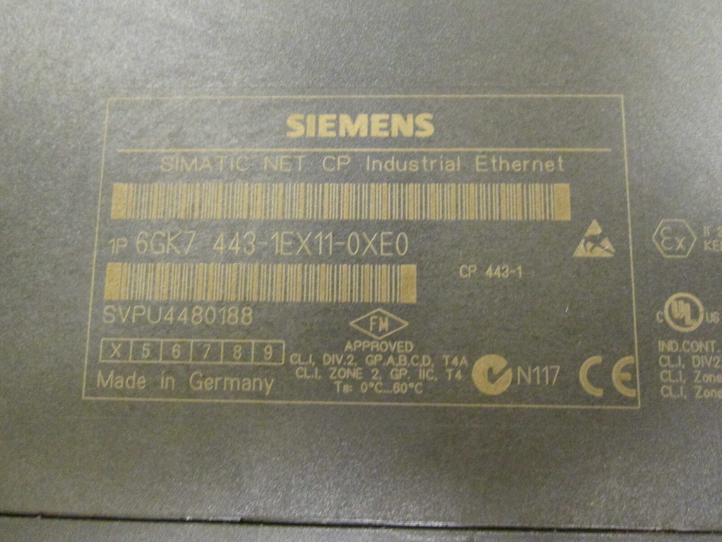 Siemens Simatic Net CP Industial Ethernet Module 6GK7 443-1EX11-0XE0 Used_x000D_ Condition: UsedBrand: SiemensMPN: 6GK7 443-1EX11-0XE0 Siemens Simatic Net CP Industial Ethernet Module 6GK7 443-1EX11-0XE0 Used Condition: UsedBrand: SiemensMPN: 6GK7 443-1EX11-0XE0 Siemens Simatic Net CP Industial Ethernet Module Part #: 6GK7 443-1EX11-0XE0 Used LOC 6E3-26