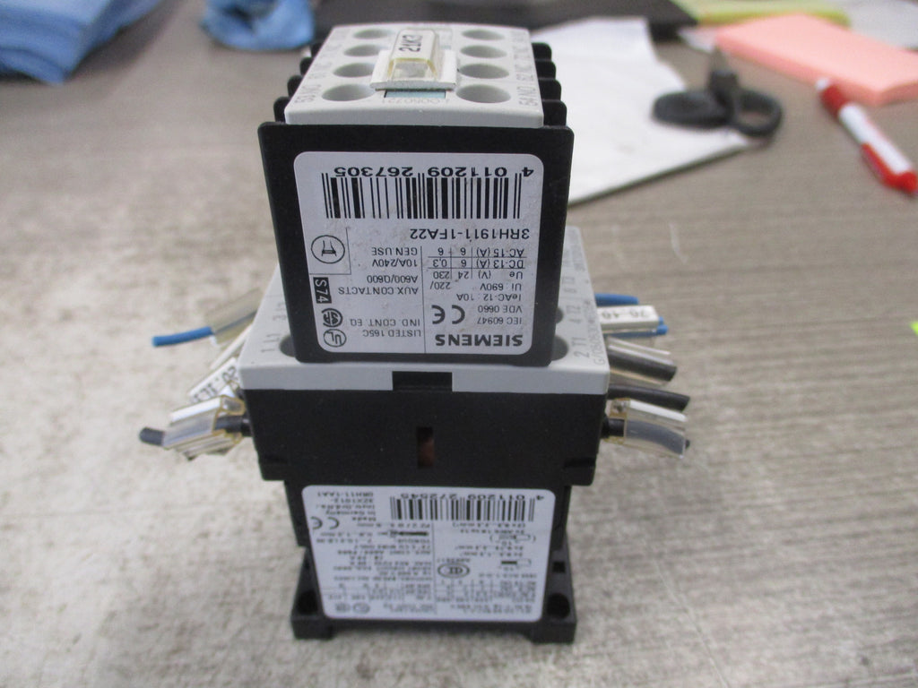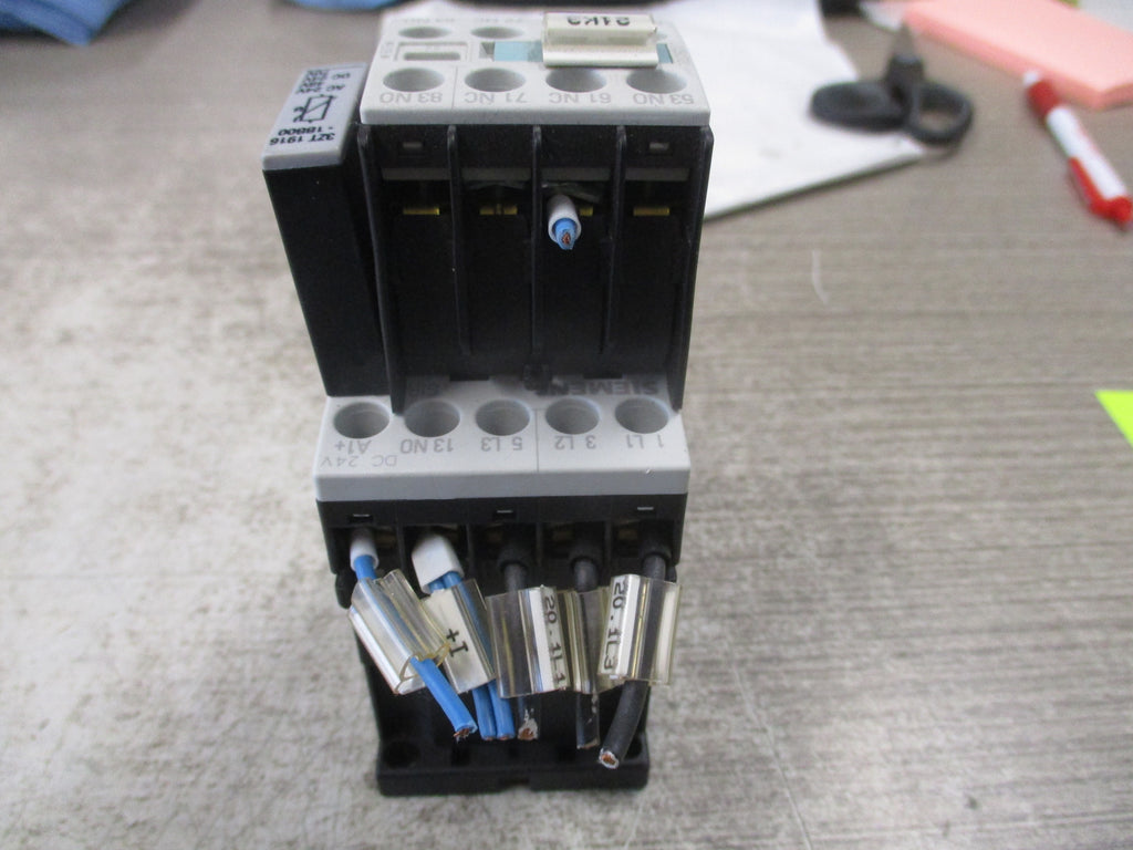 Siemens Sirius 3R Contactor 3RT1015-1BB41 24V Coil 16A 600V w/ Aux Contact Block W/Surge Suppressor Used LOC 58C5-16
