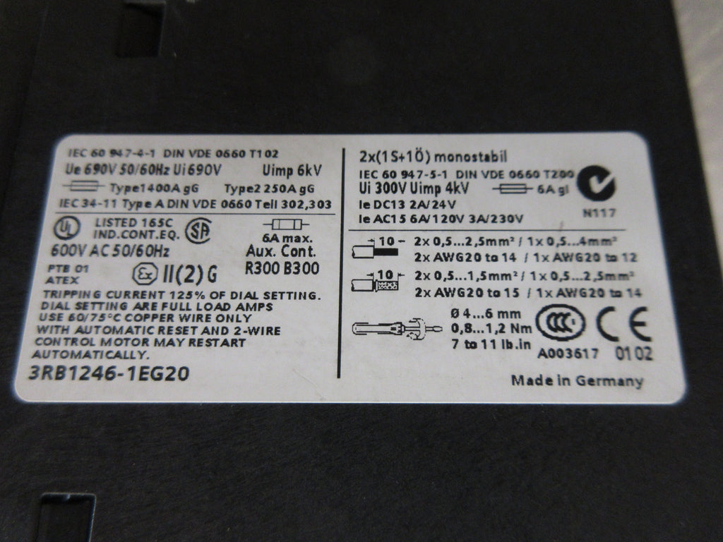 Siemens Solid State Overload Part #: 3RB1246-1EG20 Trip: 25-...