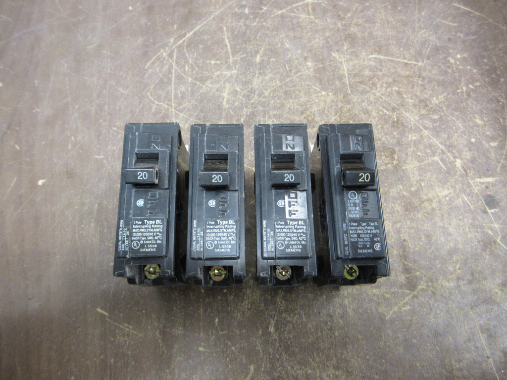 Siemens Type BL Circuit Breaker B120 120/240V 20A 1P *Lot of 4* Used