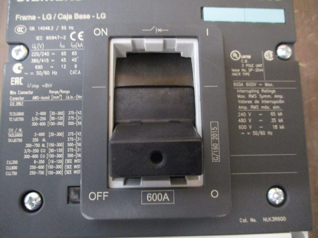 Siemens Type NLGB Circuit Breaker Part #: NLK3R600 600 A 60...