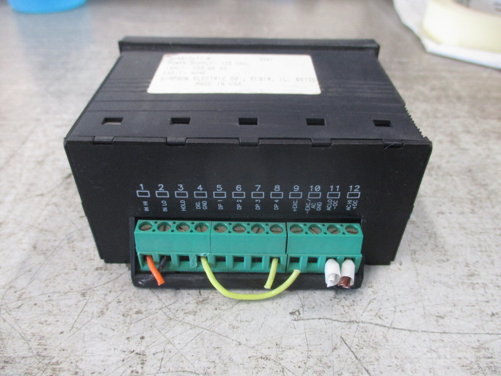 Simpson Panel Meter F-45-1-11-0 Supply: 120VAC Input: 200m VDC Used LOC 58D3-21
