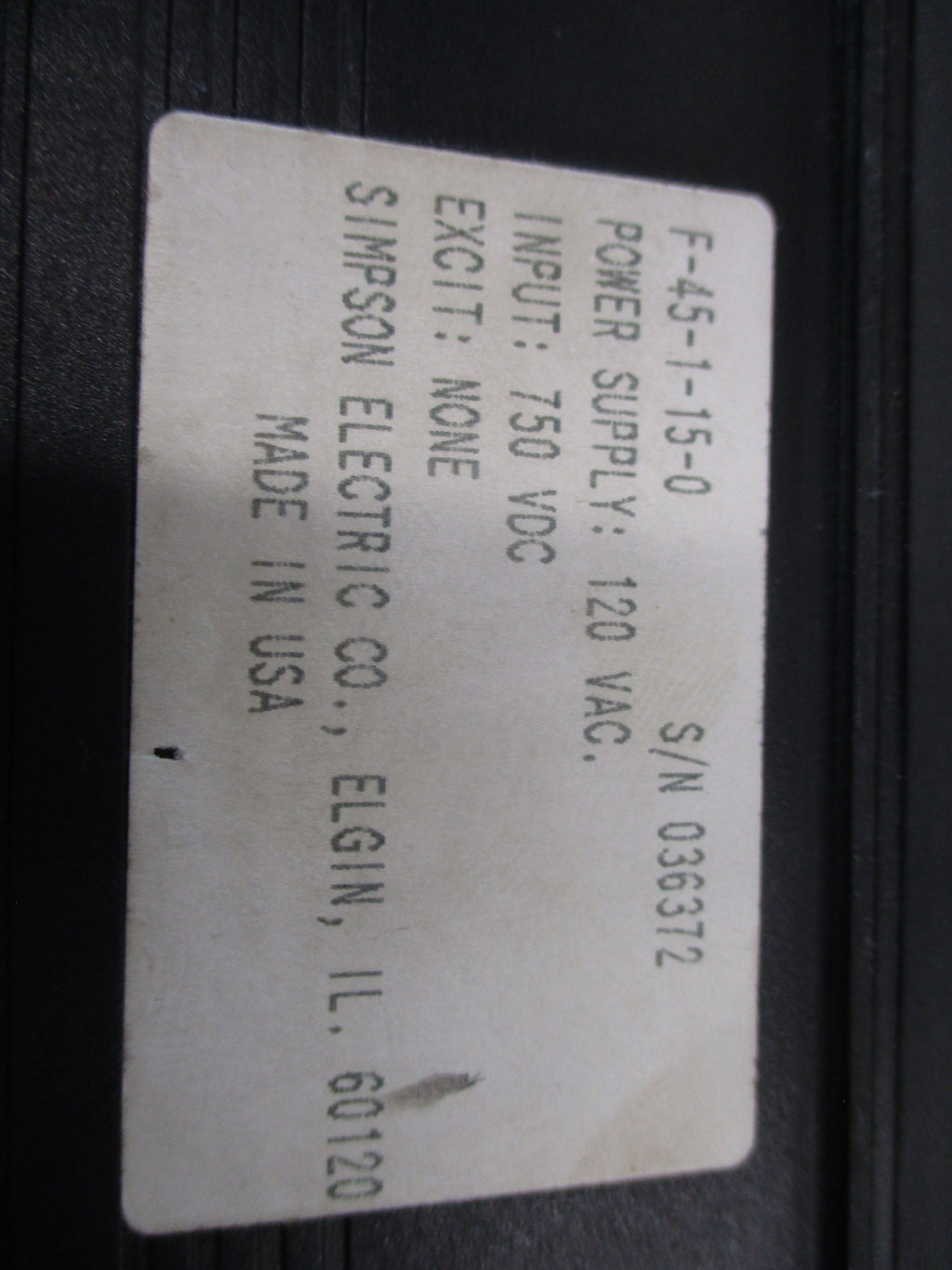 Simpson Panel Meter F-45-1-15-0 Supply: 120VAC Input: 750VDC Used LOC 58D3-20