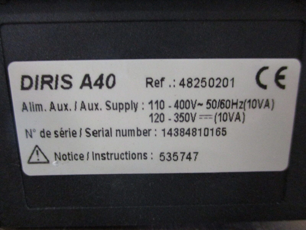 Socomec DIRIS A40 Multifunction Meter 48250201. Used._x000D_ Condition: UsedBrand: SocomecMPN: 48250201Type: Multifunction Meter Socomec DIRIS A40 Multifunction Meter 48250201. Used. Socomec DIRIS A40 Multifunction Meter Part #: 48250201 Used Loc: 26C3-6 Socomec DIRIS A40 Multifunction Meter Part #: 48250201 Uséd Loc: 26C3-6