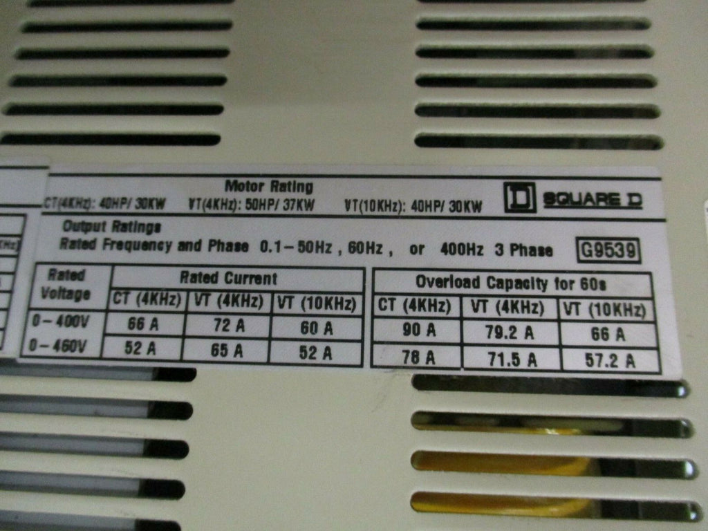 Square D AC Drive ATV66D46N4 40HP 3Ph *No Cover* w/Keypad Used_x000D_ Condition: UsedMaximum Load: 40 HPType: General Purpose AC DriveInput Voltage: 480 VMPN: ATV66D46N4Brand: Square D Square D AC Drive ATV66D46N4 40HP 3Ph *No Cover* w/Keypad Used Condition: UsedMaximum Load: 40 HPType: General Purpose AC DriveInput Voltage: 480 VMPN: ATV66D46N4Brand: Square DSquare D AC Drive Part#: ATV66D46N4 40 HP 3Ph Input: 480V 50/60Hz 76.6 A Output: 0-460V 0.1-50Hz 72 A *No Cover* w/Keypad Used loc: AB11-2535 / AB6O2