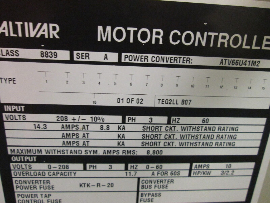 Square D Altivar 55 Bypass & AC Drive 8839ATV66U41M2 3HP *...
