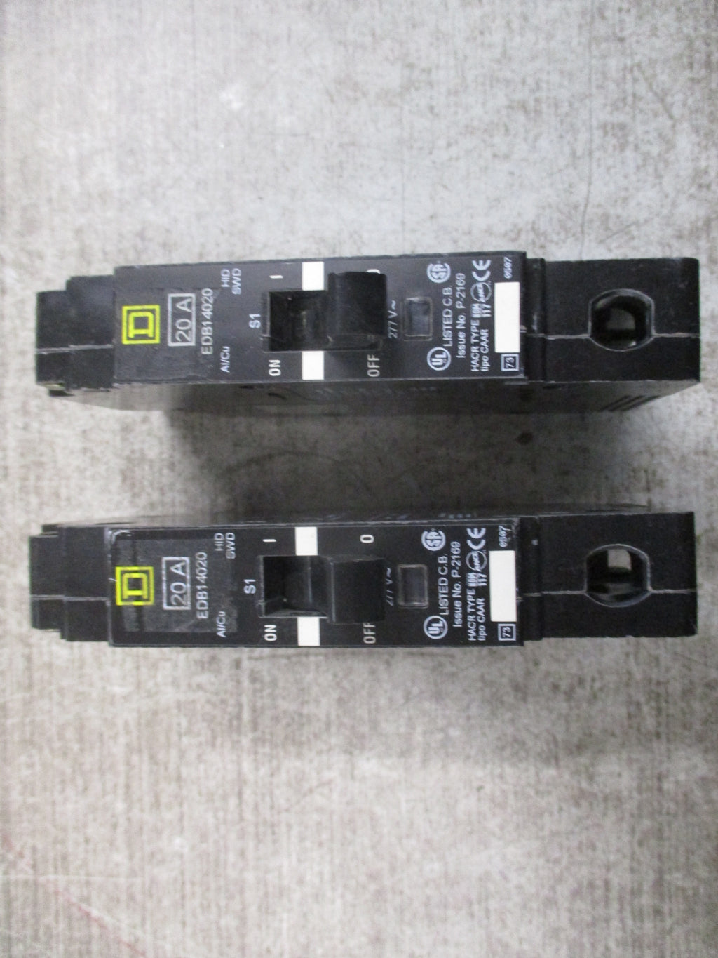 Square D Bolt-on Circuit Breaker EDB14020 Ser. 1 20A 277V 1P *Lot of 2* Used LOC 58B2-4