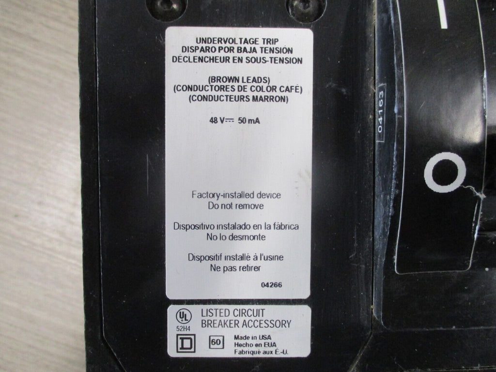 Square D Circuit Breaker 519568P14 300A 600V 3P Used_x000D_ Condition: UsedBrand: Square DColor: BlackCurrent Rating: 251-300 AMPN: 519568P14Maximum Amperage: 300 ANumber of Poles: 3Voltage: 551-600 V Square D Circuit Breaker 519568P14 300A 600V 3P Used Condition: UsedBrand: Square DMaximum Amperage: 300 AVoltage: 551-600 VColor: BlackCurrent Rating: 251-300 AMPN: 519568P14Number of Poles: 3Square D Circuit Breaker Part #: 519568P14 300A 600V 3P W/ Under Voltage Trip W/ Aux Trip *Missing Left Nug Nut* *Missing Lug Covers* Used LOC: AB11-6600 / AB2D2