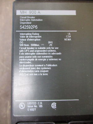 Square D Circuit Breaker 542592P6 900A 600V 3P Used_x000D_ Square D Circuit Breaker Part #: 542592P6 900 A 600 V 3P Used Loc: AB11-5735 / AB38G2 / AB6H2