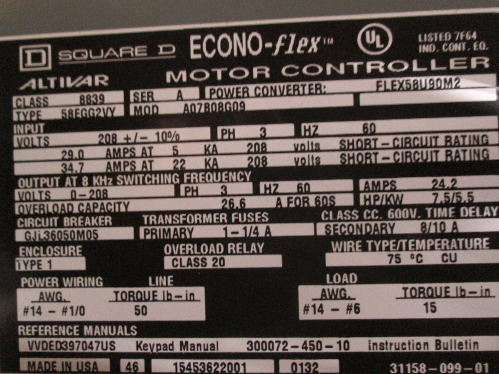 Square D Econo-Flex Altivar AC Drive 8839 58EGG2VY 7.5HP *No Box* New Surplus