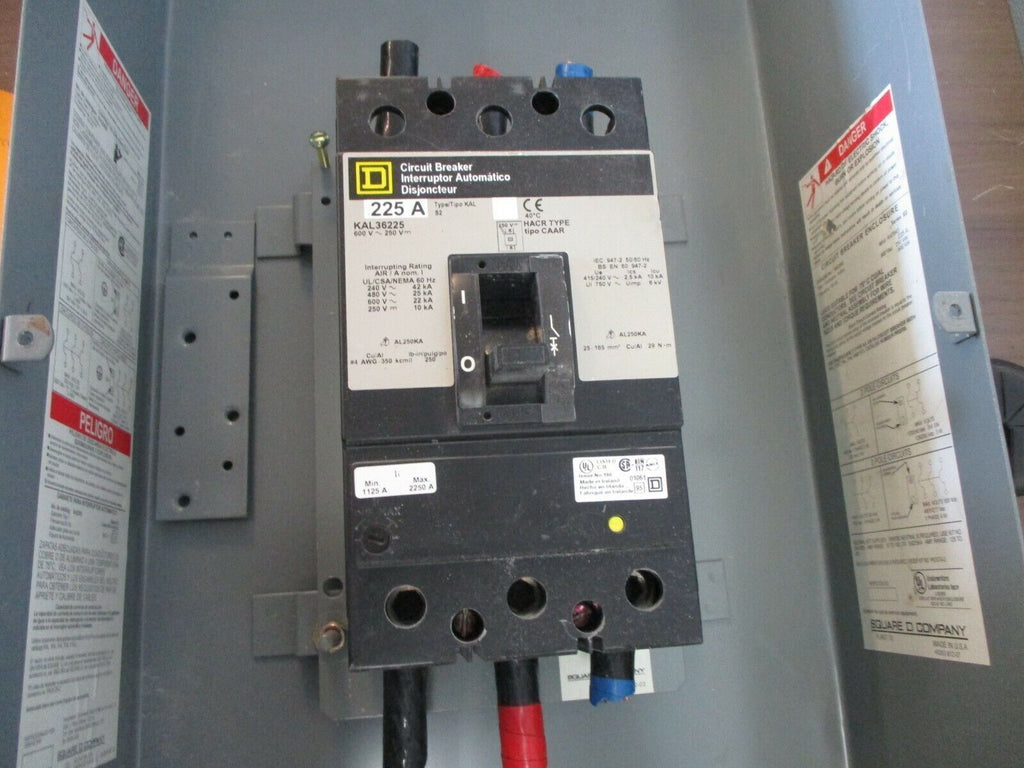 Square D Enclosed Circuit Breaker KAL36225 225A 600V Type 1 Enclosure Used_x000D_ Condition: UsedMaximum Amperage: 225 AMPN: KAL36225Brand: Square DVoltage: 551-600 V Square D Enclosed Circuit Breaker KAL36225 225A 600V Type 1 Enclosure Used Condition: UsedMaximum Amperage: 225 AMPN: KAL36225Brand: Square DVoltage: 551-600 VSquare D Enclosed Circuit Breaker Part#: KAL36225 225 A 600 V Type 1 Enclosure Used Loc: 20B2-4