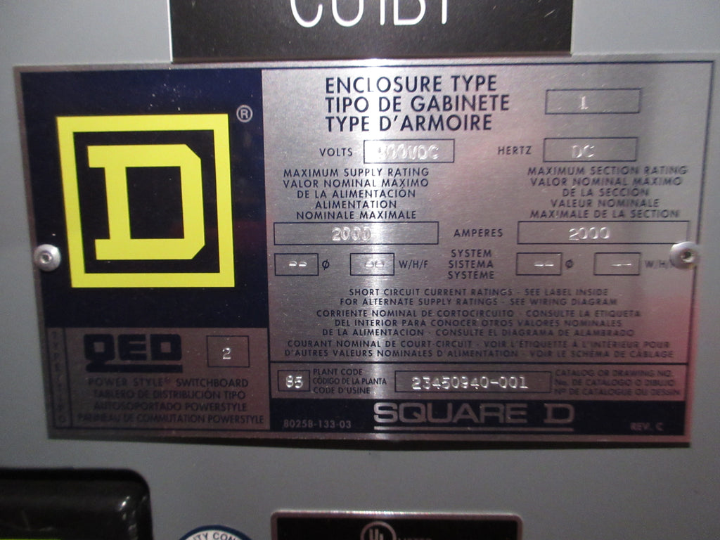 Square D Enclosed DC Circuit Breaker 23450940-001 2000A 500VDC Used