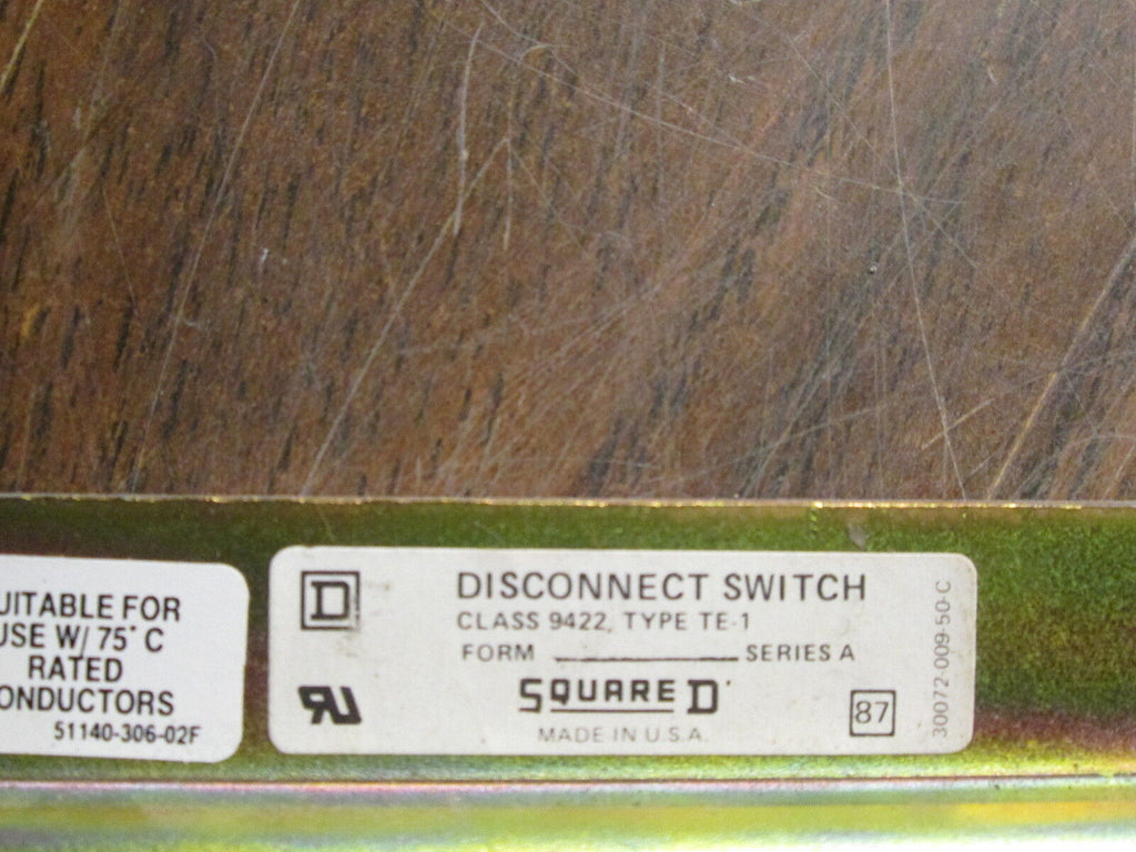 Square D Non-Fusible Disconnect Switch 9422 TE-1 100A 600V Use...