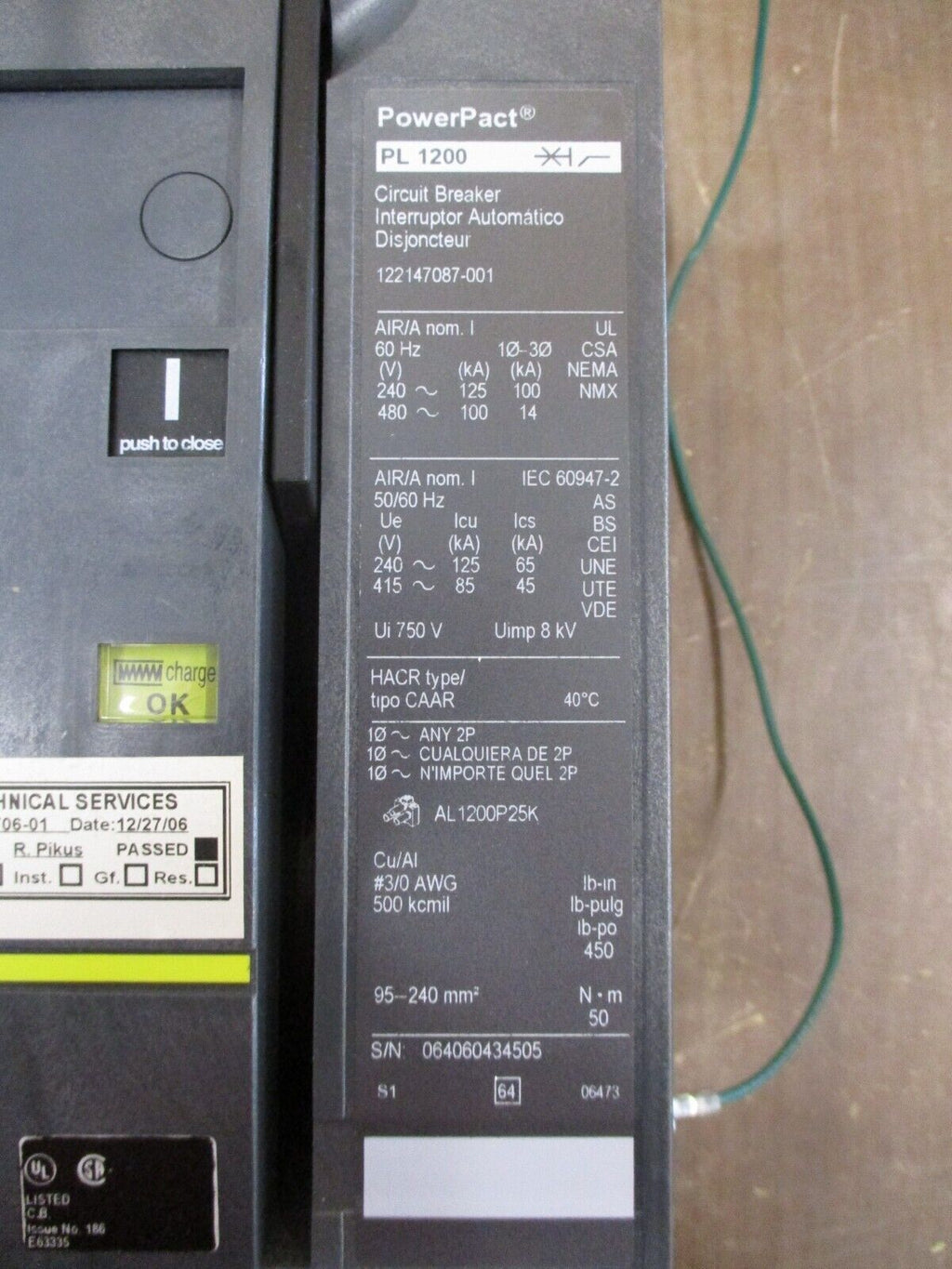 Square D PowerPact Circuit Breaker PL 1200 1200A 480V 60Hz MicroLogic 3.0 Trip