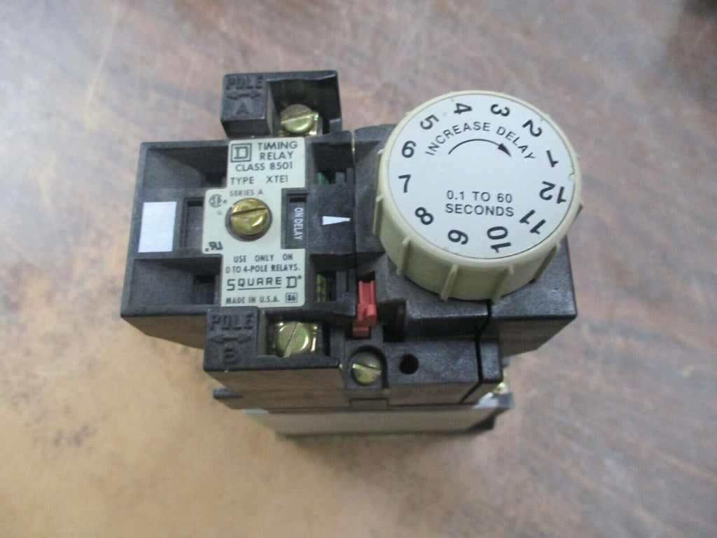 Square D Timing Relay 8501XTE1 8501X040 0.1-60 Sec, 120V Coil, Used