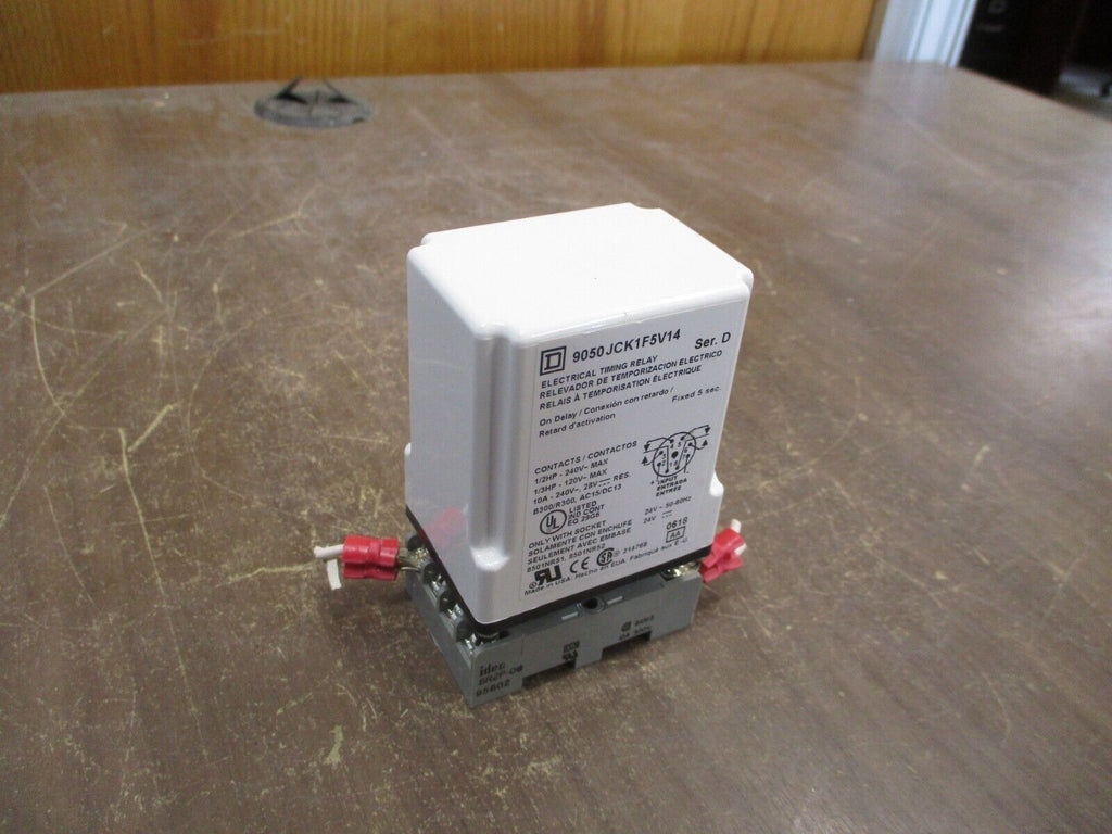 Square D Timing Relay 9050 JCK1F5V14 Ser. D Delay: Fixed 5 Sec w/ Base Used_x000D_ Condition: UsedBrand: Square DMPN: 9050 JCK1F5V14Type: Timing Relay Square D Timing Relay 9050 JCK1F5V14 Ser. D Delay: Fixed 5 Sec w/ Base Used Condition: UsedBrand: Square DType: Timing RelayMPN: 9050 JCK1F5V14Square D Timing Relay Part #: 9050 JCK1F5V14 Ser. D Delay: Fixed 5 Sec w/ Base Used Loc: 28L2-2