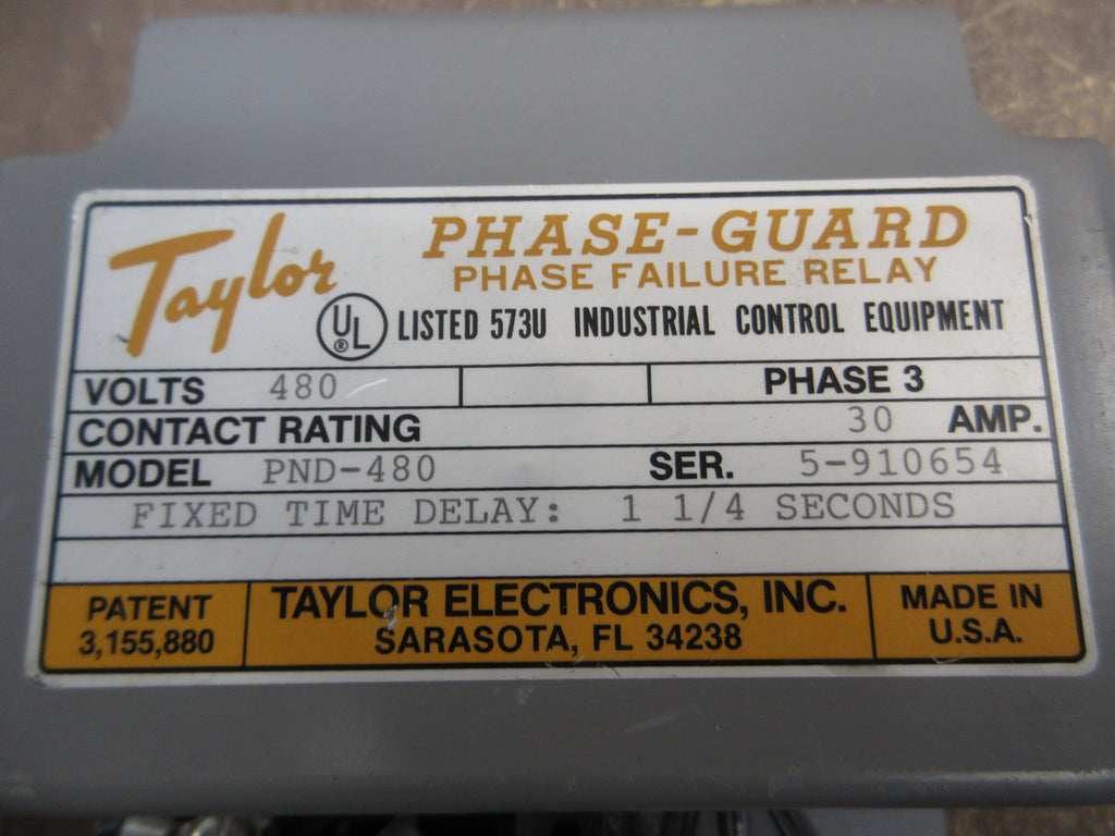 Taylor Phase-Guard Phase Failure Relay PND-480 30A 480V 3Ph Used