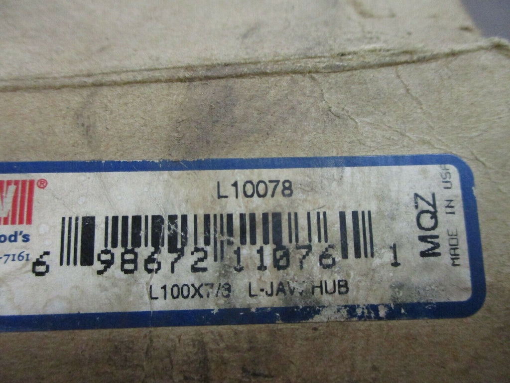 TB Woods L-Jaw Hub L10078 L100 x 7/8 New Surplus_x000D_ Condit...