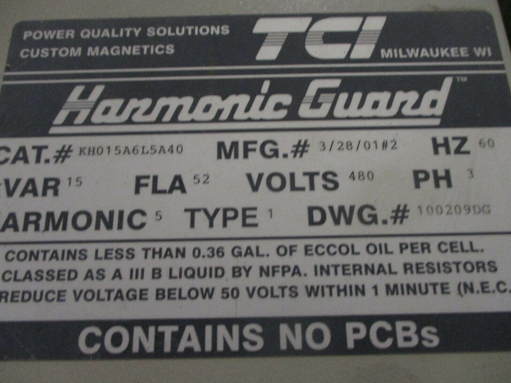 TCI Harmonic Guard Harmonic Filter KH015A6L5A40 15kVAR 480V 60Hz 3Ph 52A Used