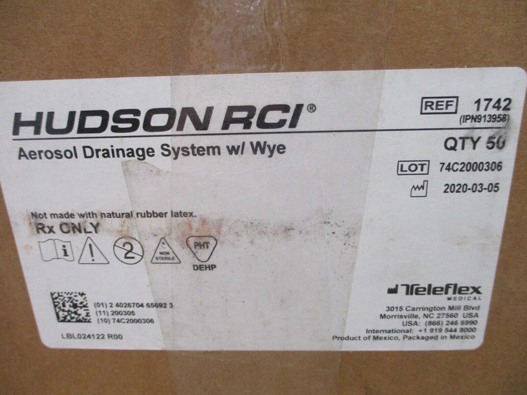 Teleflex Hudson RCI Aerosol Drainage System 1742 W/ Wye *Box of 50* New Surplus._x000D_ Condition: New – Open boxBrand: TeleflexMPN: 1742 Teleflex Hudson RCI Aerosol Drainage System 1742 W/ Wye *Box of 50* New Surplus. Condition: New – Open boxBrand: TeleflexMPN: 1742Teleflex Hudson RCI Aerosol Drainage System Part #: 1742 W/ Wye *Box of 50* New Surplus Loc : 26C1-3