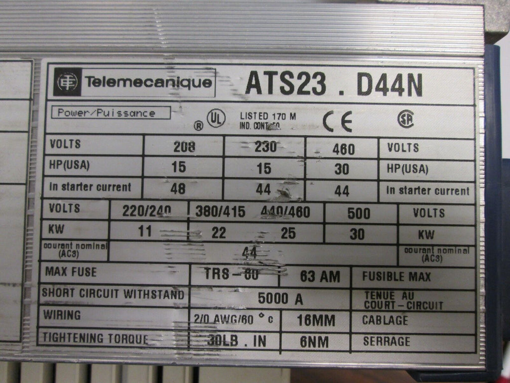 Telemecanique Altistart 3 Soft Start ATS23.D44N 30HP / 15HP 208/230/460V