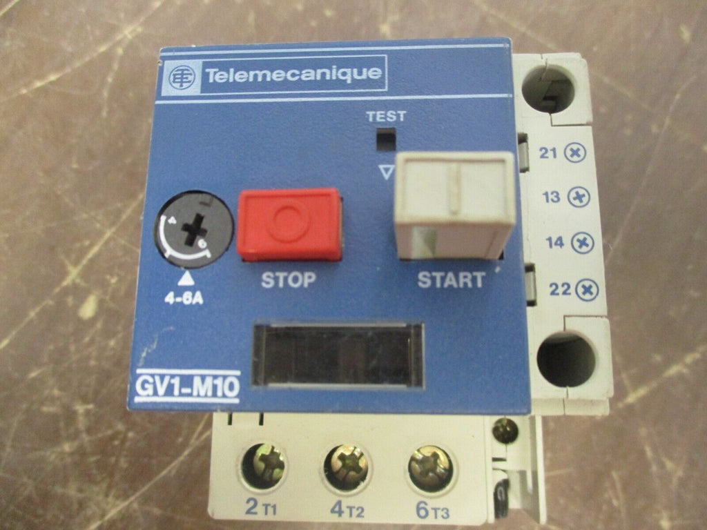 Telemecanique Manual Starter GV1-M10 Trip: 4-6A w/ Aux Contact Used Condition: UsedBrand: TelemecaniqueMPN: GV1-M10 Telemecanique Manual Starter GV1-M10 Trip: 4-6A w/ Aux Contact Used Condition: UsedBrand: TelemecaniqueMPN: GV1-M10Telemecanique Manual Starter Part #: GV1-M10 Trip: 4-6A Used w/ Aux ContactLOC 20K4-40