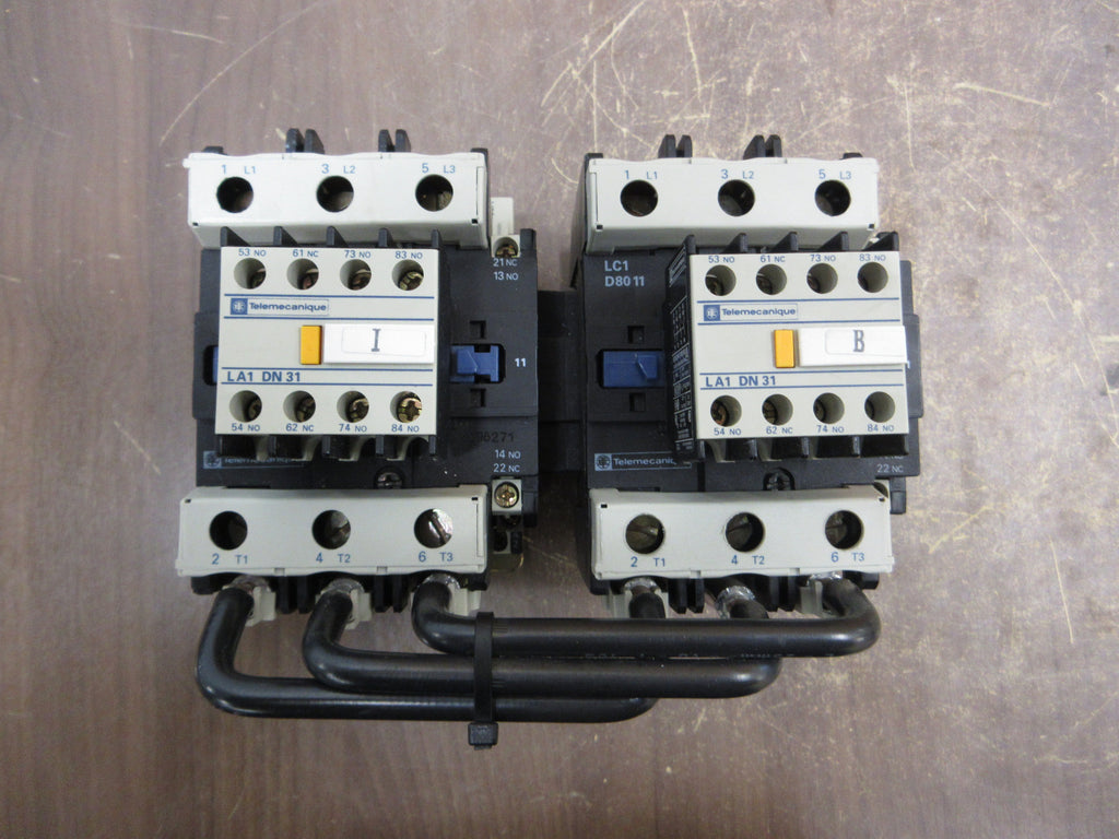 Telemecanique Reversing Contactor LC1 D8011 50-127V Coil 110A 600V (2) Aux Contact Block Used LOC 58A4-7