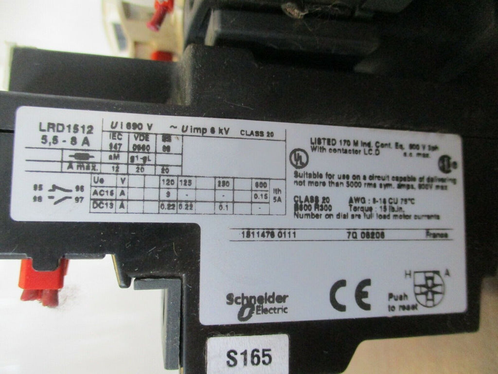 Telemecanique Starter LC1 D09/LRD1512 120V Coil Trip: 5.5-8A 600V Used_x000D_ Condition: UsedModel: LRD 1512MPN: LC1 D09/LRD1512Brand: Telemecanique Telemecanique Starter LC1 D09/LRD1512 120V Coil Trip: 5.5-8A 600V Used Condition: UsedModel: LRD 1512MPN: LC1 D09/LRD1512Brand: Telemecanique Telemecanique Starter Part #: LC1 D09/LRD1512 120V Coil Trip: 5.5-8A 600V Used LOC 13H3-32
