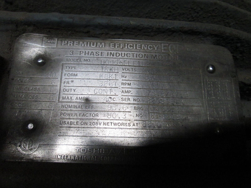 Toshiba AC Motor B0306FLF1U2H 30HP 1175RPM 230/460V 75.8/37.9A...