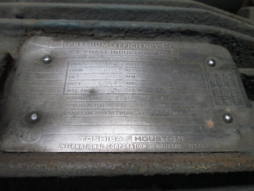 Toshiba AC Motor B0306FLF1U2H 30HP 1175RPM 230/460V 75.8/37.9A 60Hz Used