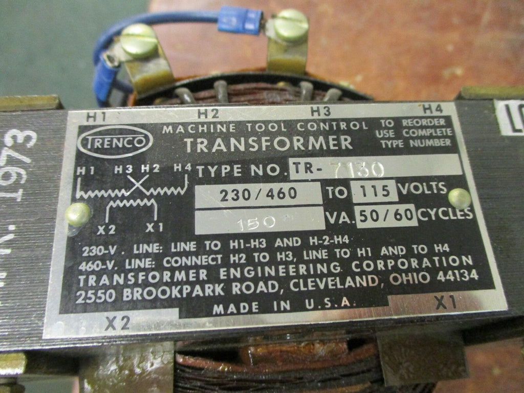 Trenco Control Transformer TR-7130 150 VA Pri: 230/460V Sec: 115V Used_x000D_ Condition: UsedBrand: TrencoMPN: TR-7130 Trenco Control Transformer TR-7130 150 VA Pri: 230/460V Sec: 115V Used Condition: UsedBrand: TrencoMPN: TR-7130 Trenco Control Transformer Part # TR-7130 150VA Pri: 230/460V Sec: 115V Used LOC 10D3-29