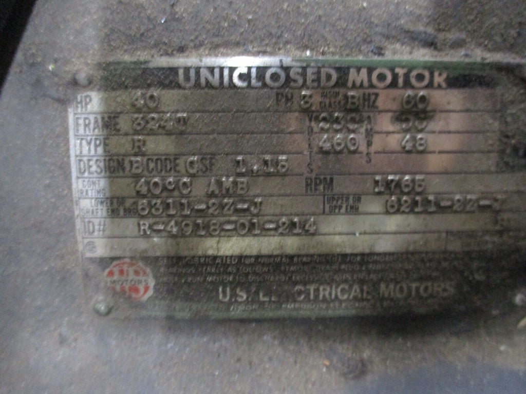 US Motors Type R AC Motor R-4918-01-214 40HP 1800RPM 230/460V 324T Frame Used