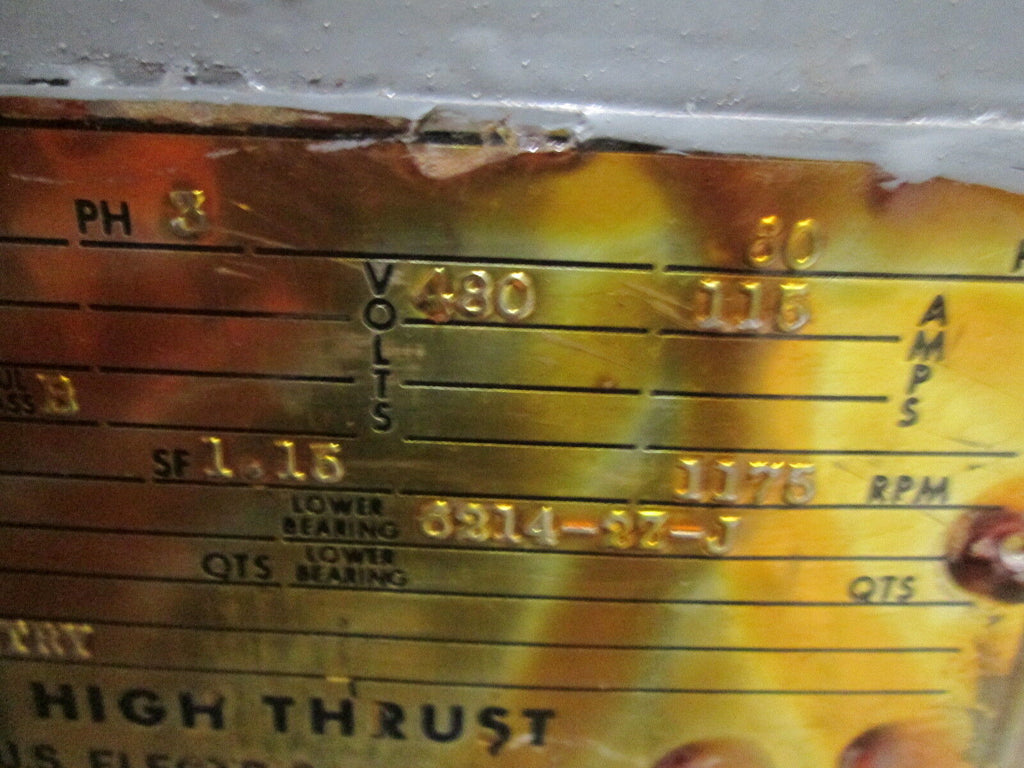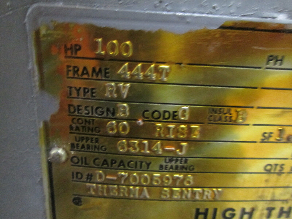 US Motors Vertical Solid Shaft AC Motor D-7005978 100HP 1200RPM FR:444T 480V