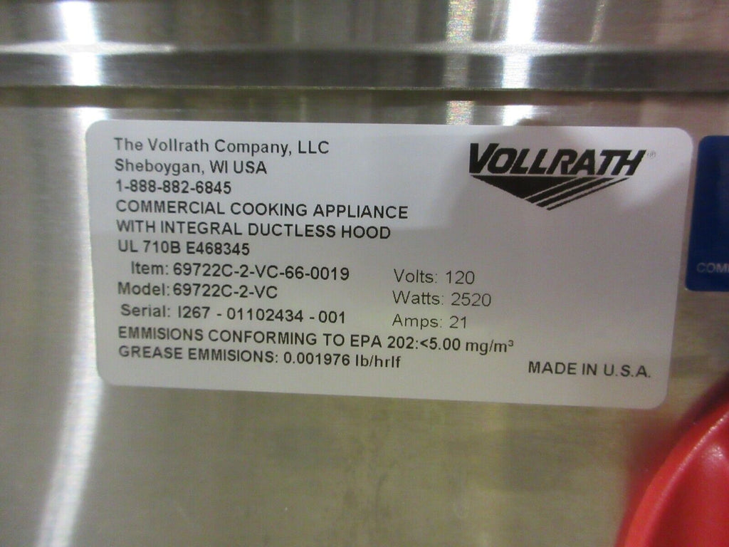 Vollrath Induction Hot Food Serving Counter Part #: 69722C-2-VC-66-0019 120V 21A 2520W Integral Ductless Hood Used LOC AB11-0017