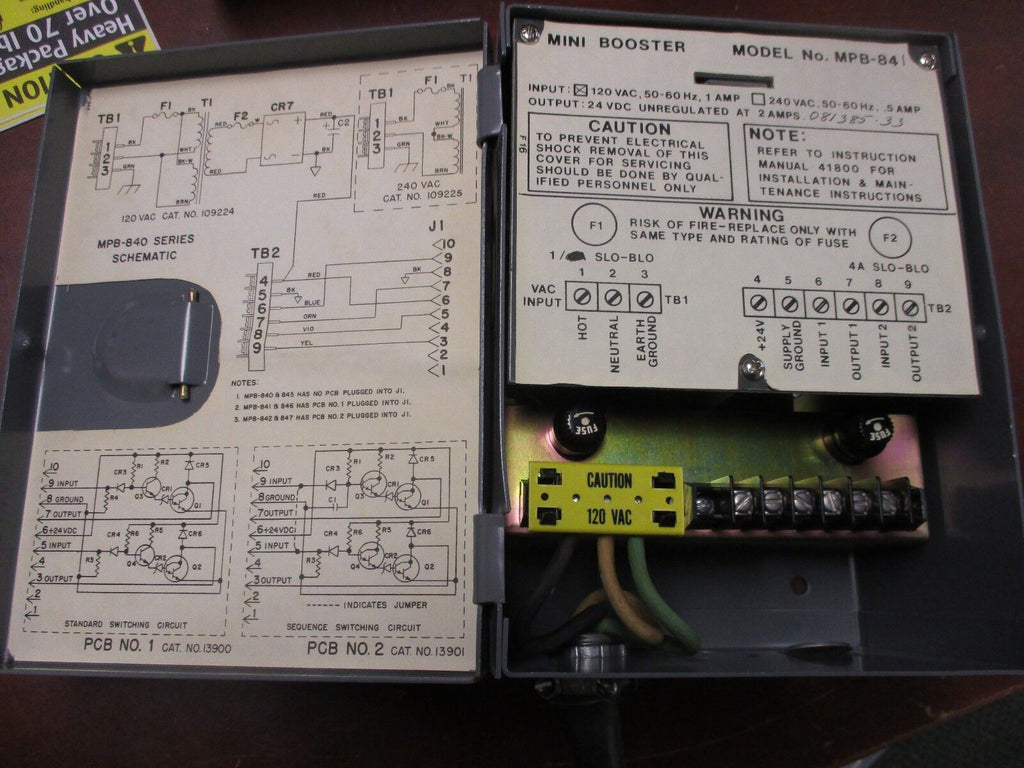 Condition: UsedBrand: Von DuprinMPN: MPB-841 Von Duprin Mini Booster Part #: MPB-841 Input: 120VAC 50-60Hz 1A Output: 24VDC 2A Used LOC 4G3-14You may also like
