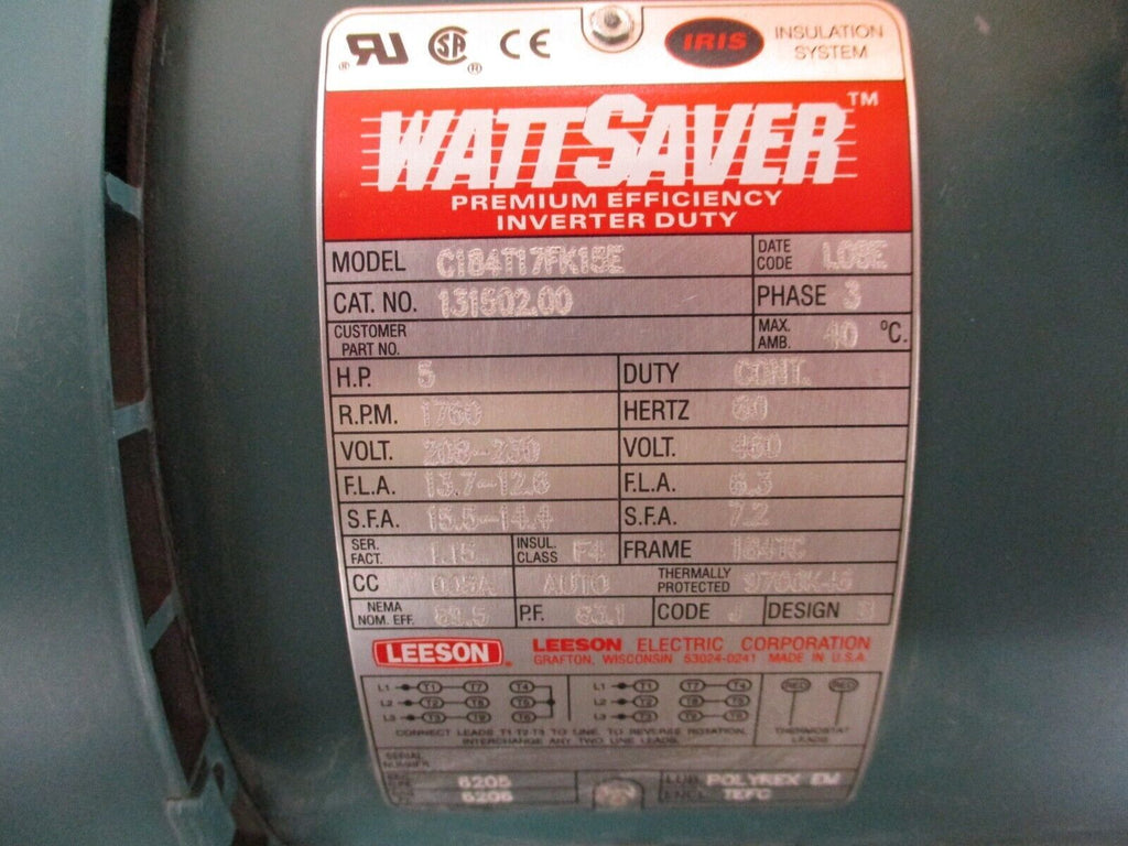 WattSaver Motor 13150200 5HP 1800RPM 208-230/460V 13.7-12.6A 6...