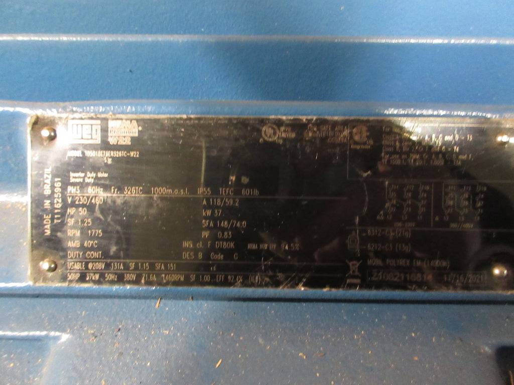 WEG Inverter Motor Part #: T05018ET3ER326TC-W22 50 HP 1775 ...