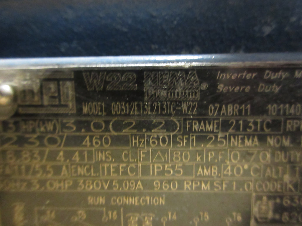 WEG Motor Part #: 00312E13E213TC-W22 3 HP 1200 RPM 230/460...
