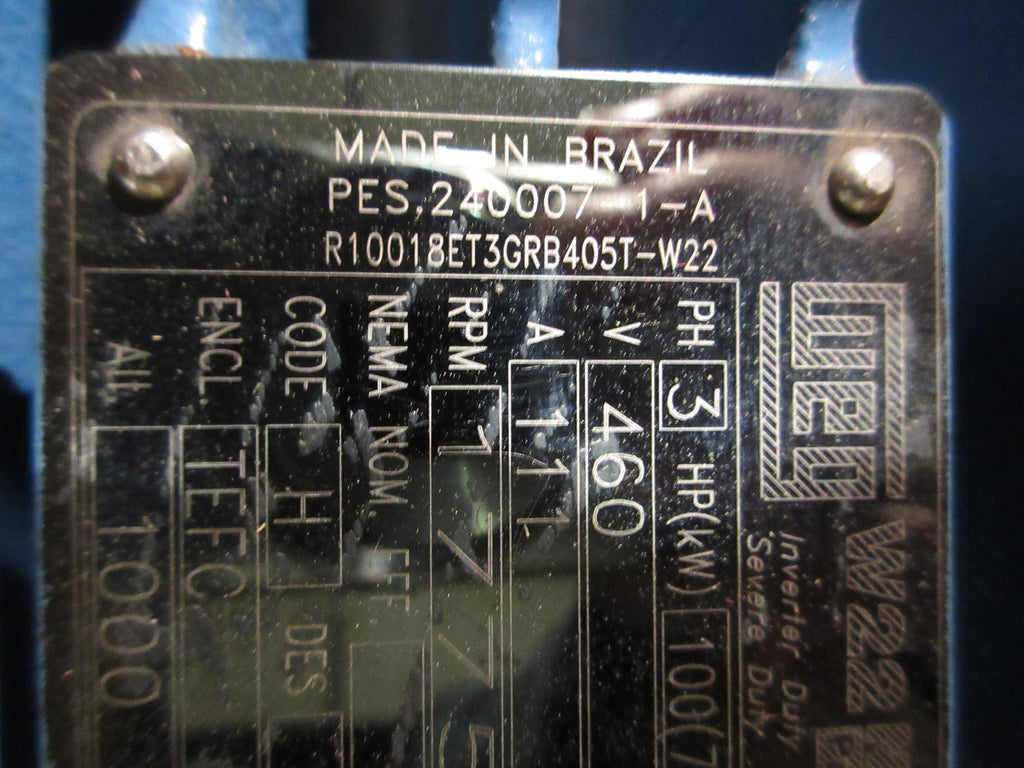 WEG Motor Part #: R10018ET3GRB405T-W22 100 HP 1775 RPM 460...