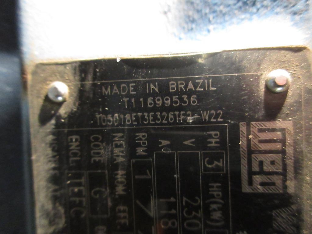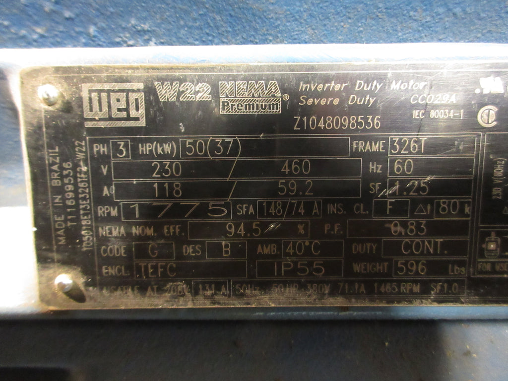 WEG Motor Part #: T05018ET3E326TF2-W22 50 HP 1775 RPM 230/...