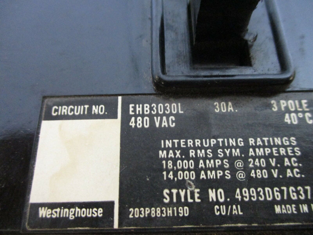 Westinghouse Circuit Breaker EHB3030L 30A 480V 3P Used_x000D_ ...