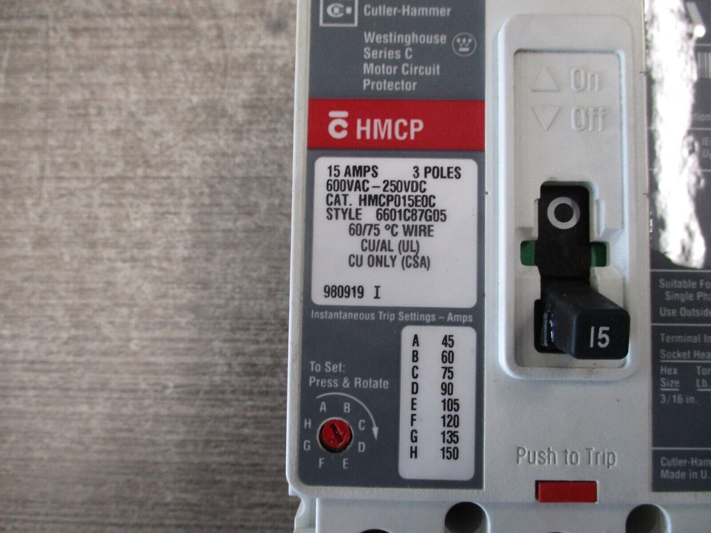 Cutler-Hammer Circuit Breaker Part #: HMCP015E0C 15A 600V 3P Used LOC 57F5-10 / 32D2