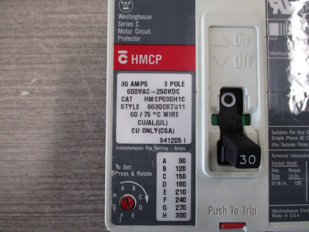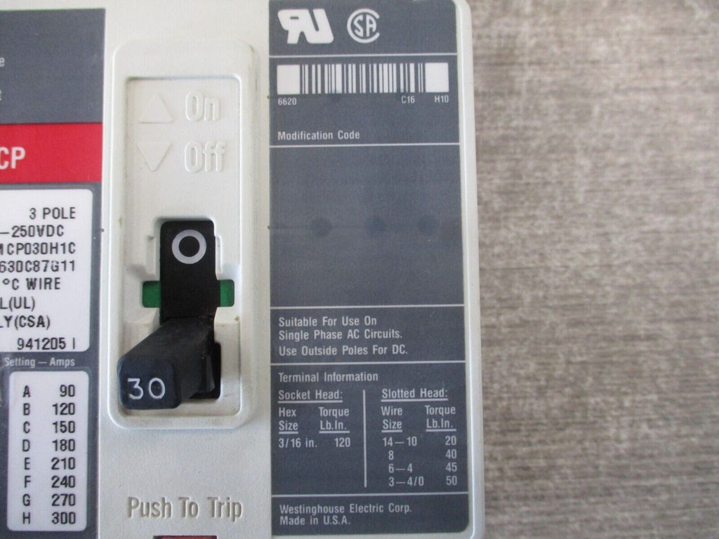 Westinghouse Circuit Breaker HMCP030H1C 30A 600V 3P Used