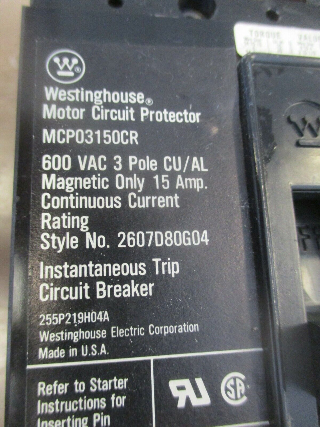 Westinghouse Circuit Breaker MCP03150CR 15A 600V 3P Used