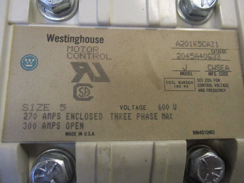 Westinghouse Contactor A201K5CAZ1 Size: 5 600V 300A 120V Coil Used